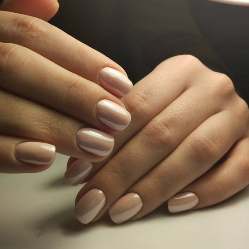 Красивый и интересный вариант, в котором молочный фоновый лак дополняется полосками обводки в прозрачном варианте или контрастных тонах.