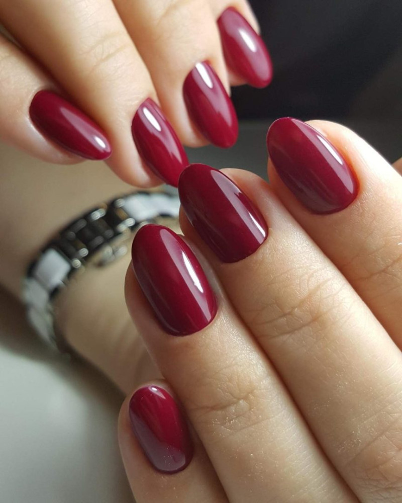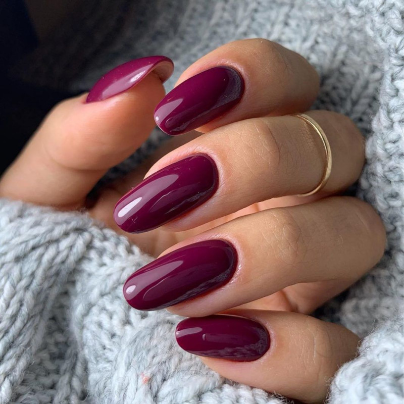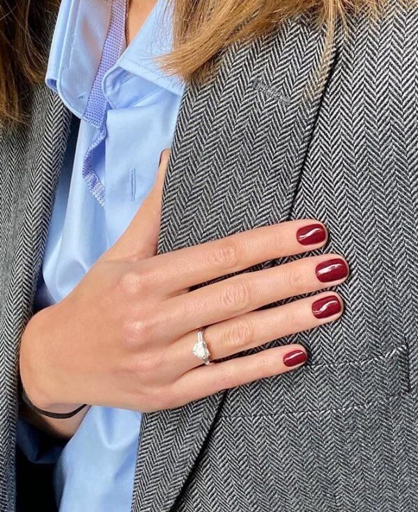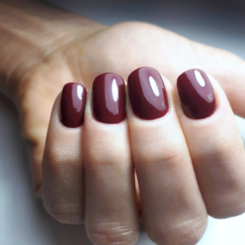 Винно-красные оттенки с пряностями – глубокие, близкие к бордовым, с золотисто-коричневыми искрами, станут отличным дополнением к осеннему сезону. Можно смело носить такой лак и на длинных, и на коротких ногтях.