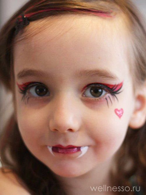 Не менее интересно смотрится детский макияж вампира для тематической вечеринки. Оказывается, кровопийцы могут быть невероятно милыми и даже слегка гламурными. Ребенок будет в восторге от преображения, как и окружающие.