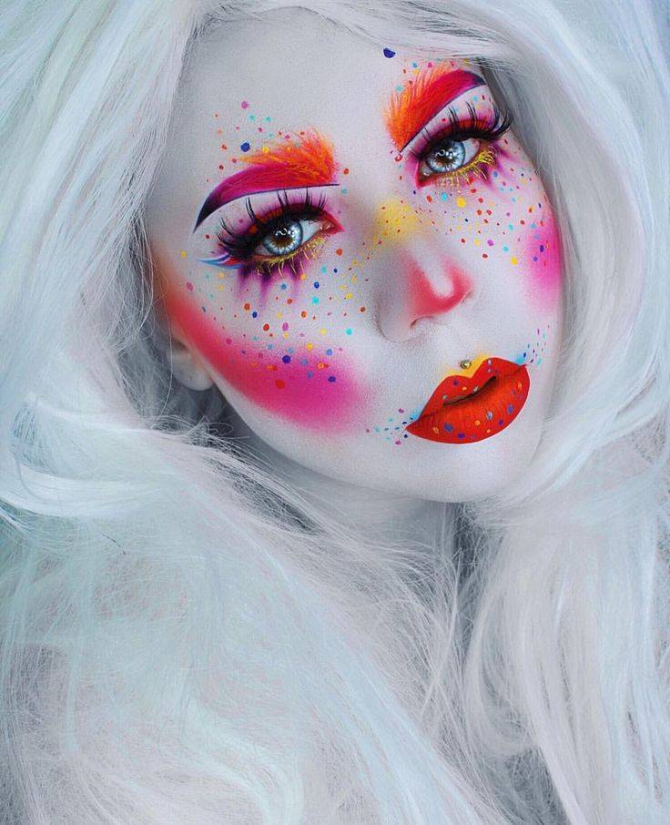 Клоуны могут быть как милыми и добрыми, так и злыми и страшными (чего стоит только один образ Пеннивайза!). Чтобы сделать грим клоуна на Хэллоуин понадобиться много ярких косметических средств, но результат стоит того.