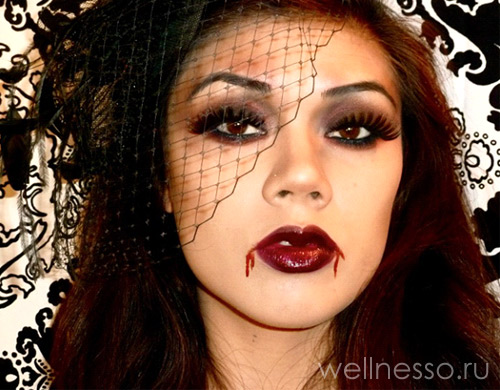 Кстати, можно использовать обычный макияж смоки. При желании добавить несколько капелек крови и белоснежные клыки. Но образ не будет законченным без соответствующего одеяния. Стиль ретро подойдет как нельзя лучше.