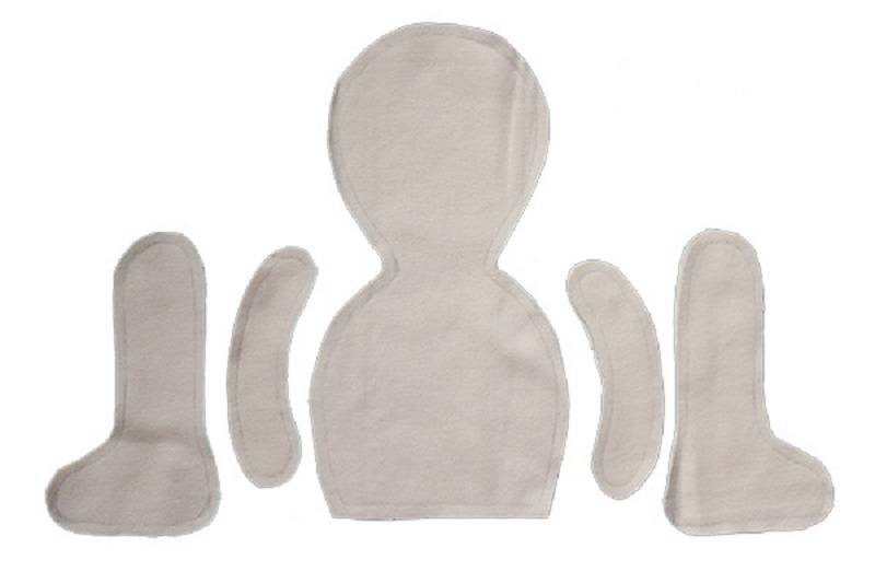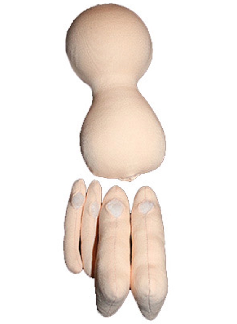Зашиваем оставленные отверстия на остальных деталях. Соединяем части куклы, получив готовое тело.