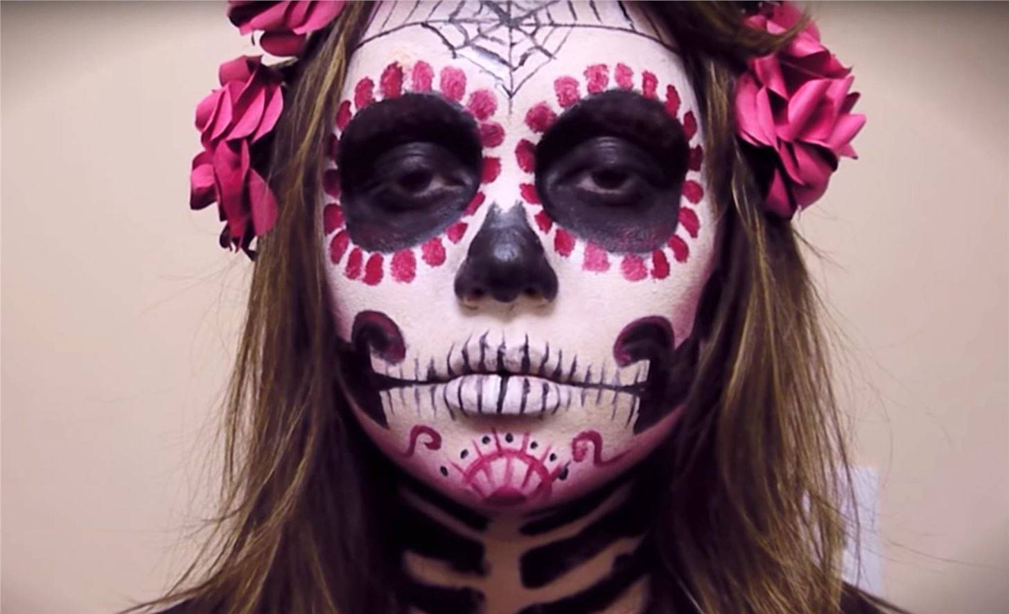 Видео: как нарисовать грим «сахарный череп» на Хэллоуин.