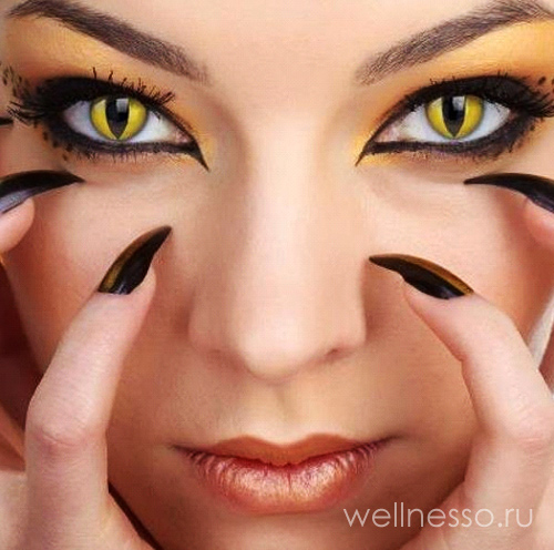 Очень тяжело добиться особенной распахнутости взгляда с помощью обыкновенной черной туши, даже если нанести ее в несколько слоев. Лучший вариант – это накладные ресницы. Чтобы добиться бездонности взгляда можно использовать контактные линзы, происходит это за счет увеличения зрачка.