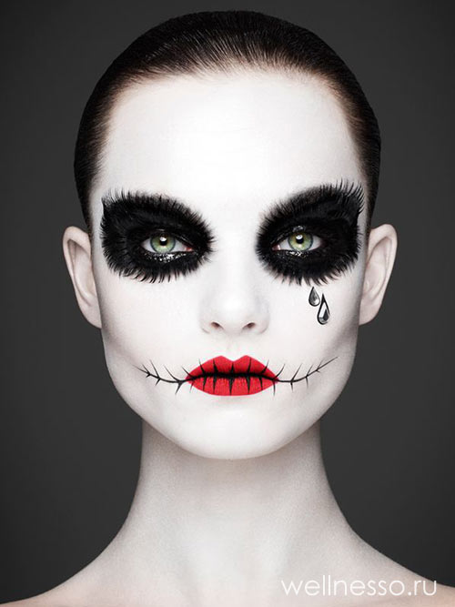 Макияж куклы – одна из самых популярных идей для праздника. Все-таки не все девушки горят желанием преображаться в ведьм и предпочитают образ жутких красавиц.