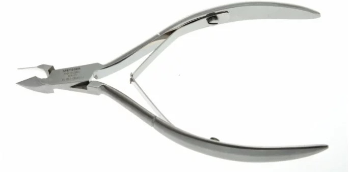 - Кусачки. Они предназначены для удаления кутикулы и обработки кожи вокруг ногтей. Они так же, как и ножницы, должны быть хорошо заточены, иметь очень острое лезвие для их эффективности и, как ни странно, безопасности.