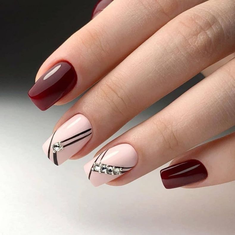 Малиновые оттенки отлично смотрятся на овальных ногтях, а также пластинах с закругленными углами.