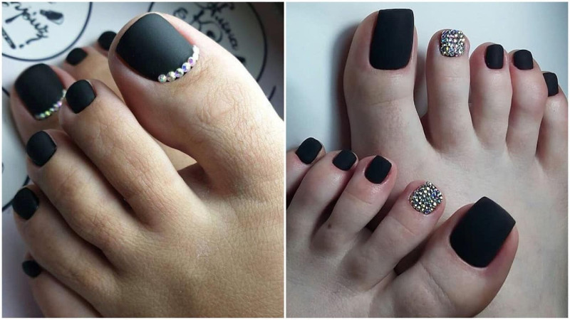 Многим полюбился черный матовый педикюр, особенно в сочетании с формой в виде коромысла или прямоугольника.