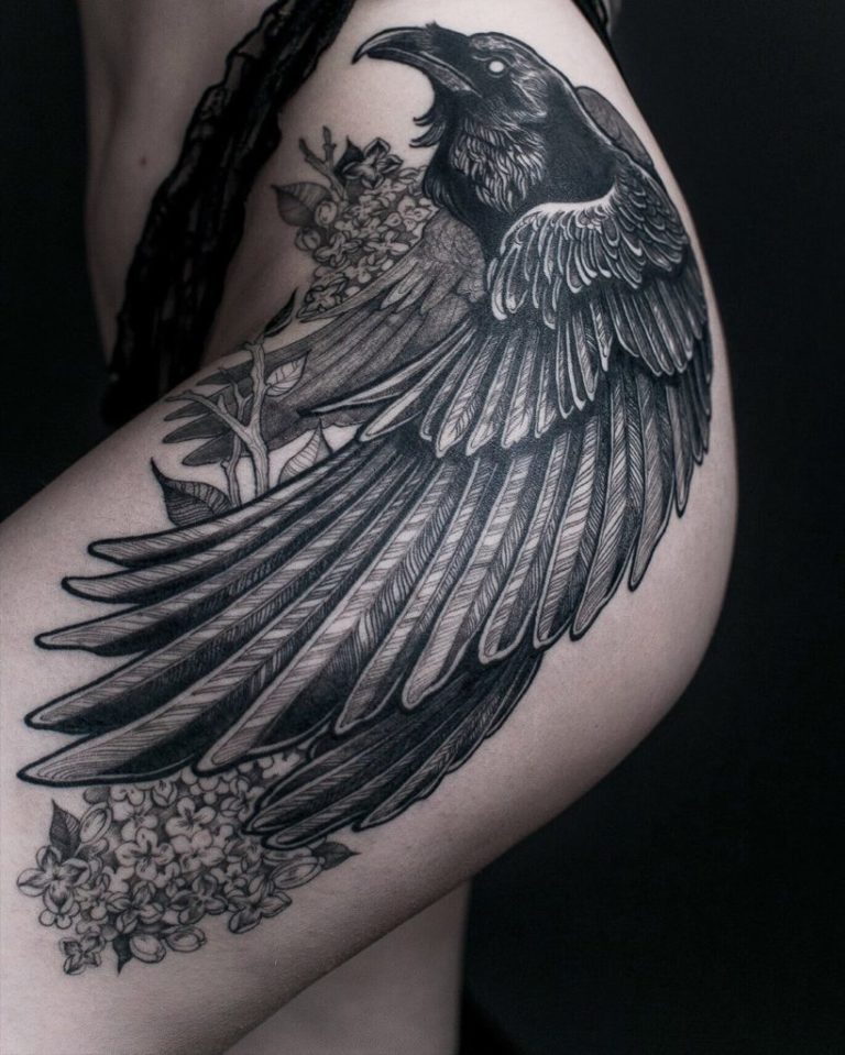 Некоторые популярные блэкворк-тату могут быть в виде животных, черепов птиц или даже цветочных узоров.