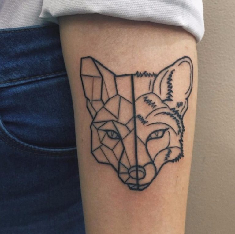 Штрихи и полоски легко превращаются в динамичные, «живые» рисунки с эффектом движения и объема. Например, татуировка волка – один из удачных примеров. Так же, как и женский аналог – лиса, он идеально подходит на руку. И не требует большого масштаба, что иногда тоже плюс.