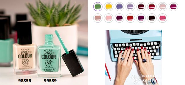 Многие клиенты и представители интересуются качеством, стойкостью и оттенками лаков для ногтей, которые представлены в онлайн каталогах Эйвон. Поэтому я решила сделать короткий обзор всех линеек покрытий для дизайна ногтей, которые производятся в компании. Avon регулярно пополняет ассортимент товаров продукцией для маникюра, увеличивая цветовую палитру, функционал, подстраиваясь под времена года и модные тенденции каждого сезона. Для поклонников и покупателей декоративной косметики Эйвон я расскажу о самых популярных оттенках и полезных свойствах каждой линейки цветных лаков, а так же о базовых и верхних покрытиях для ногтей.