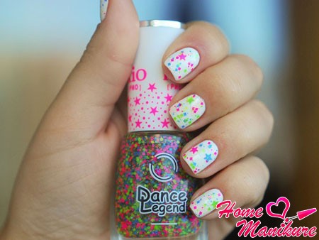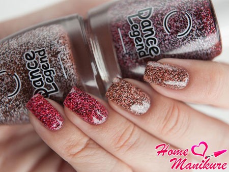 Интересно смотрится маникюр, выполненный с помощью икорного лака. Желейное покрытие с большим количеством неблестящего глиттера различных размеров и форм поможет вам создать праздничный нейл-арт. Лак с мелкими блестящими частицами покорит поклонниц песочного маникюра. Эффект сахарного песка, переливающегося на ноготках, добавит вам особого шарма. Помимо этого, богатая палитра цветов и оттенков позволяет выбрать наиболее подходящий по случаю лак, который станет украшением любого образа. Теплые нюдовые краски или яркие неоновые тона – выбор остается за вами. Мы предлагаем вашему вниманию коллекцию фото, где представлены различные покрытия Дэнс Легенд, чтобы вы смогли оценить их красоту и великолепие.