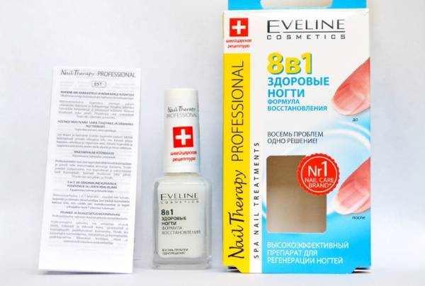 Одним из неплохих решений служат лечебные средства для укрепления ногтевой пластинки, например, лак для ногтей «Эвелин 8 в 1».