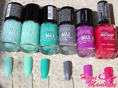 - Наличие разных цветов и оттенков. Помимо того, что компания Эвелин выпускает лак для ногтей классических оттенков, ее широкий ассортимент удовлетворит капризы любой представительницы прекрасной половины человечества. Богатая палитра цветов и эффектов не оставят равнодушными даже самых заядлых модниц. Теплые пастельные оттенки, яркие клубные варианты, кроваво-красные или кричаще-вызывающие цвета, холодные металлические или спокойные натуральные – все эти краски присутствуют в той или иной коллекции лаков от компании Eveline.