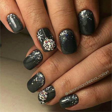 Украшение маникюра объёмными стразами актуально в 2021-2022, если это уместно.