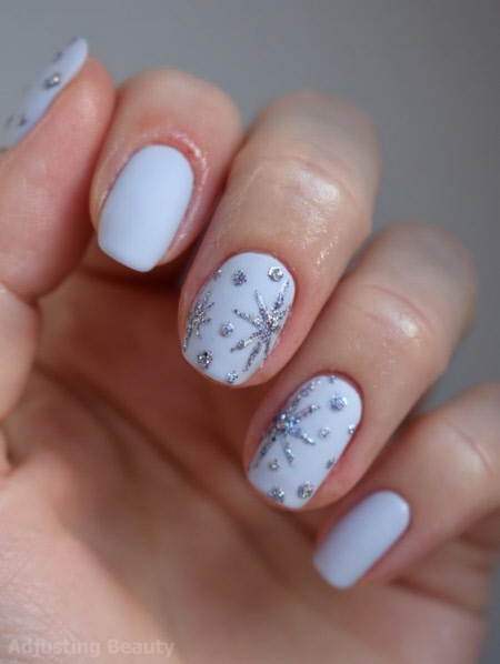 С праздничным настроением, конечно же приходит зимний маникюр. В холодную пору года выбирайте более прохладные оттенки лаков и не забывайте о праздничном нейл-арте на короткие ногти.