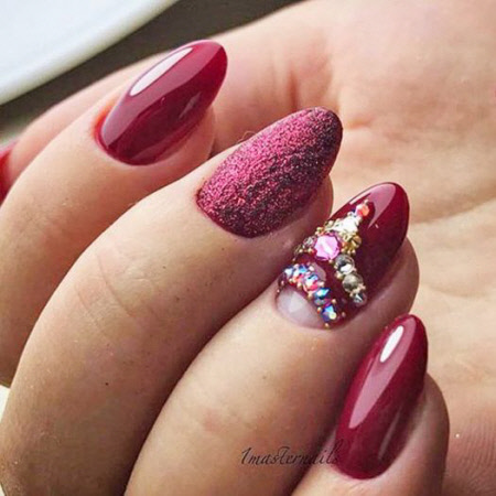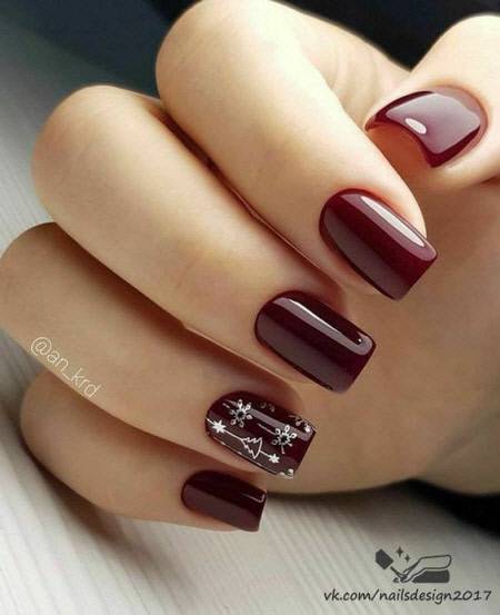 Красивый цвет, сочетающий в себе нотки фиолетового, розового и красного, идеально подходит для коротких ногтей. Его часто комбинируют с серебряным глиттером или стразами.