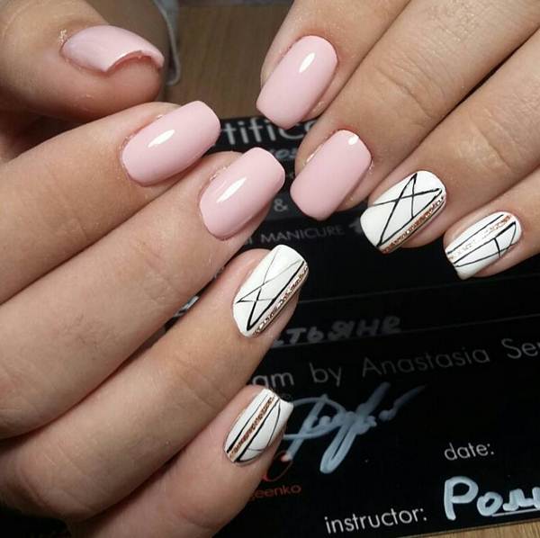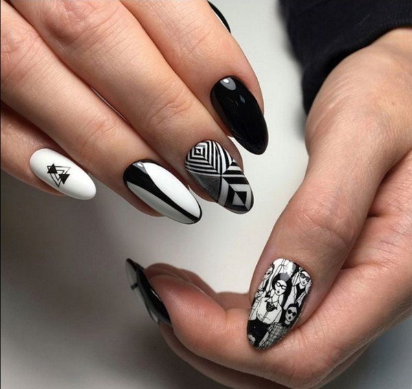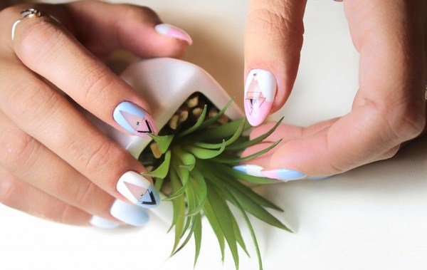 Это новый тренд, который будет преобладать этой осенью. Ромбы, треугольники, прямоугольники становятся вдохновением для нейл-мастеров. Обычно здесь используют черно-белые цвета, но вы можете выбрать любой оттенок.