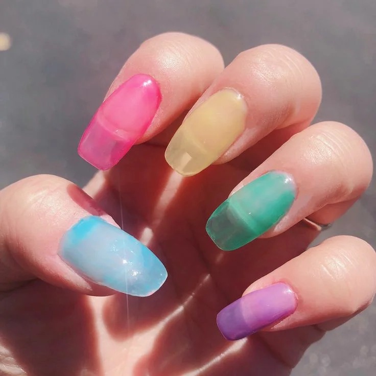 Такой дизайн обещает стать самым главным трендом осени 2022 года. По мнению специалистов, «желейные» ногти всегда привлекают внимание и смотрятся ярко. Но следует учитывать, что такой дизайн не подходит для офисных леди