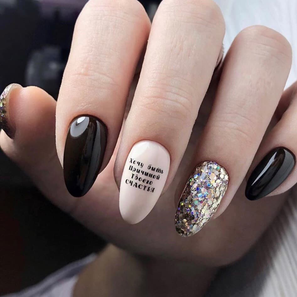 Один из самых ярких трендов маникюра осень 2022 года – ногти с надписями. Такой нейл-дизайн стоит делать только на полупрозрачной натуральной основе и максимально короткой длине ногтей.