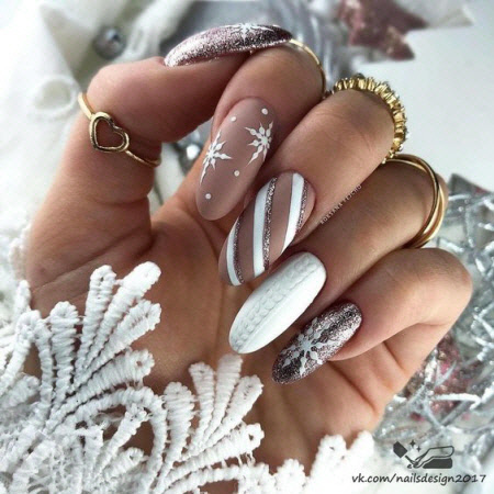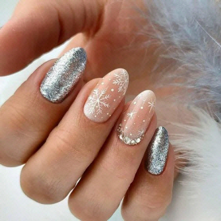 Отличная альтернатива яркому новогоднему маникюру. Сдержанная классика.