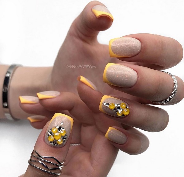 Для желтых оттенков лака подходит любая модная форма ногтей: миндалевидная, острая, закругленная. Они одинаково хорошо смотрятся на коротких, длинных и средней длины ногтях.