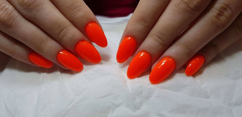 Довольно неожиданный оттенок в осенней палитре — классический оранжевый цвет. Обычно он присутствует в маникюре в виде дополнения и используется мастерами для создания рисунков: листья, цветы. Но в этом году модно красить ногти в однотонный оранжевый.