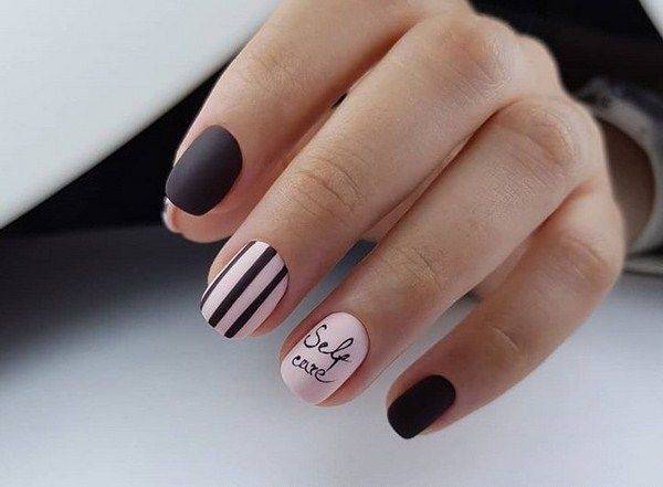 Также можно украсить маникюр дизайном в виде тонких серебряных или черных полос