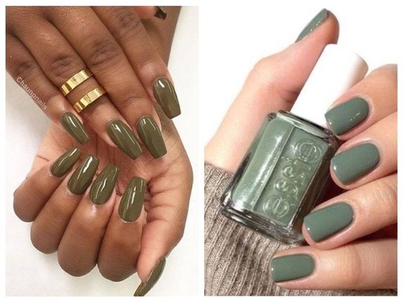 Оливковый цвет на ногтях смотрится при условии, что они средней длины. Слишком короткие с таким оттенком кажутся широкими, а чрезмерно длинные — тусклыми.