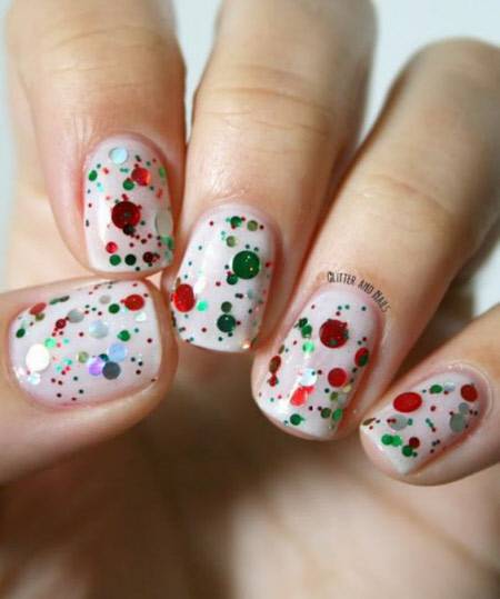 Глиттер всегда привлекает внимание. Многие девушки любят дополнять свой образ блестящими украшениями. В праздники эти маленькие, но очень яркие элементы присутствуют в одежде, прическе и маникюре. Блестки сочетаются с любым оттенком лака, подходят для любой длины и формы ногтей