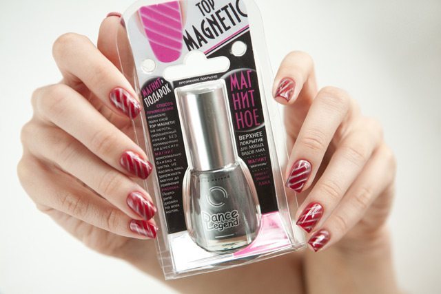 Одной из интереснейших и уникальных находок стал недавно появившийся на рынке красоты магнитный лак для ногтей. Звучит немного странно, согласитесь?! Но неповторимость этого изобретения заставляет восхищаться им каждый раз при использовании. Секрет этого лака заключается в том, что в его основе заложены металлические частицы, которые после его нанесения на ногти, притягиваются специальным магнитом, образуя причудливые узоры. Такой магнит встроен в крышечку лака, а форму узора можно выбрать самостоятельно.
