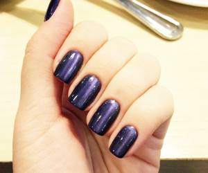 Магнит подносится к ногтю, покрытому свежим лаком, на очень близкое расстояние. Касаться ногтем магнита нельзя. Далее надо держать магнит около ногтя и ждать, пока все металлические частички станут на место.
