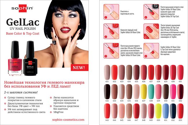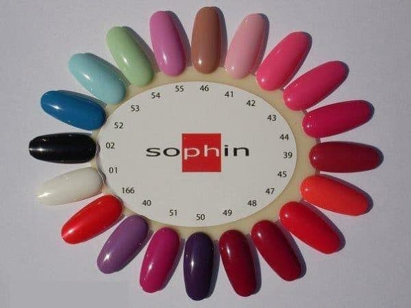 Бренд косметической продукции sophin ориентирован на дам любого возраста. Палитра декоративных покрытий достигает 150 изысканных оттенков. Этот косметический продукт имеет прочное соединение с ногтевой основой и считается одним из лучших покрытий для идеального и стойкого маникюра.