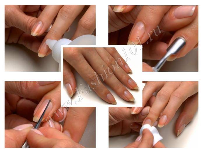 - Для начала необходимо проделать процедуру обычного маникюра, очистить ногти и подпилить их пилкой.