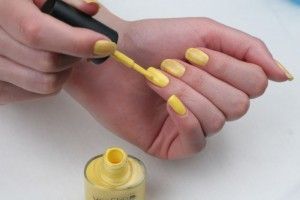 Итак, переходим непосредственно к покрытию ногтей. В связи с тем, что лак Винилюкс защищает ноготь от окрашивания, нет необходимости наносить базу, соответственно сразу наносится первый слой желаемого цвета, после чего необходимо дать ему высохнуть. Так как после покрытия в один слой, чаще всего остаются проплешины и разводы, необходимо покрыть ноготь ещё раз, благодаря этому сглаживаются все неровности и шероховатости.