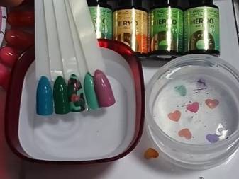 Таким образом, если подержать руки на холоде или в тепле, то цвет ногтей меняется. Такой маникюр всегда смотрится необычно и подходит как для торжества, так и для ежедневного использования, всё зависит от выбранной цветовой гаммы.
