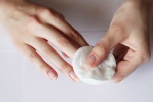 Затем нужно обезжирить ногтевую пластину. Для этого лучше использовать безворсовые салфетки, в таком случае никакая ворсинка не останется прилипшей намертво к ногтю