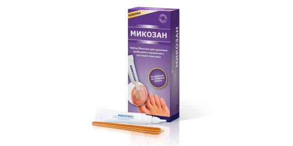 - Микозан – это противогрибковое средство, созданное из натуральных компонентов. Предназначено для уничтожения разных видов грибов. Курс лечения предусматривает нанесение лака на поверхность заражённых ногтей дважды в день 4 недели, не пропуская ни дня. Противопоказания – беременность, лактация, непереносимость компонентов. Побочные эффекты проявляются редко, возможен зуд и ощущение жжения. Цена – от 860 руб. Подробнее о лаке Микозан