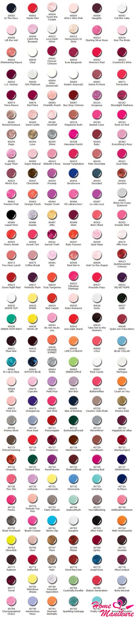 Под брендом Орли выпускается широкое многообразие цветов лака для ногтей. Это и классические тона, не выходящие из моды, и экстравагантные яркие оттенки, изысканные перламутровые, ультрамодные переливающиеся. Каждая женщина сможет подобрать для себя цветовое решение в зависимости от желания и настроения. Все многообразие цвета нашло воплощение в коллекциях Орли.