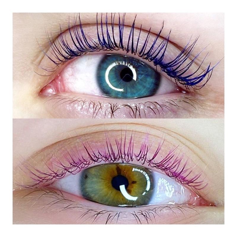 - Окрашивающее. В состав смесей входят красящие компоненты, поэтому реснички приобретают глубокий насыщенный цвет. Дополнительно производится уход за волосками. Эффект окрашивания будет держаться до тех пор, пока не сойдет защитная пленка состава.