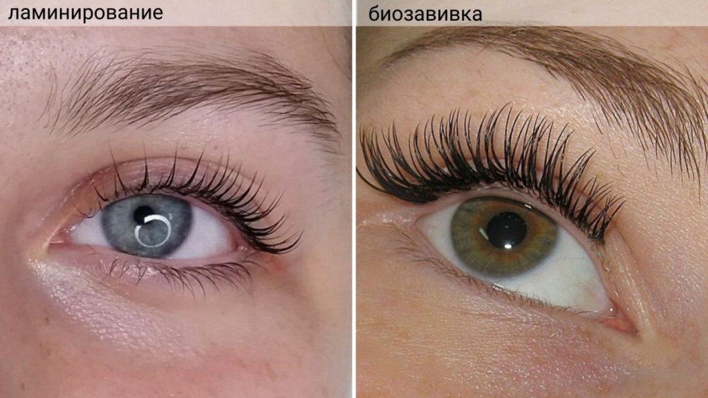 Биозавивка — это похожая процедура, но с применением более агрессивных и мощных средств. Ее в большинстве случаев применяют на очень жесткие ресницы, которые не поддаются корректировки мягкими и более безопасными средствами. В тоже время она может слегка осветлять ресницы, в то время, как ламинирование их затемняет.