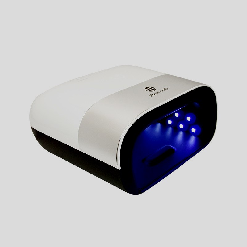 Прибор относится к полимеризационному типу. Используется для сушки гель-лаков и гелей. Гибридный вариант. В составе присутствует 36 лампочек, которые отлично рассеивают светодиодное и ультрафиолетовое излучение. Ногтевое покрытие высушивается за 30 секунд. Мощность устройства достойна похвалы. Дно полностью отсутствует. Корпус легкий и прочный. Не боится царапин и механических повреждений. Цифровой дисплей отличается яркостью и удобством. Вес – 480 грамм, габариты – 21*20,5*7,5 см. Управление сенсорное. Четыре режима таймера: 120, 60, 30 и 15 секунд. Работает от обычной бытовой розетки.