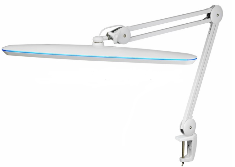 Второй важный момент – это освещение. Здесь стоит отдать предпочтение, в зависимости от работы. Для мастеров косметических салонов лучше выбирать светодиодные модели. Они дают более яркое освещение, с ними комфортнее работать и не раздражают глаза. Люминесцентные лампы подойдут для рукодельниц и любителей чтения. Также для специалистов подойдут бестеневые и кольцевые лампы. С ними не возникнет проблем при работе в виде падающих теней на рабочий участок.
