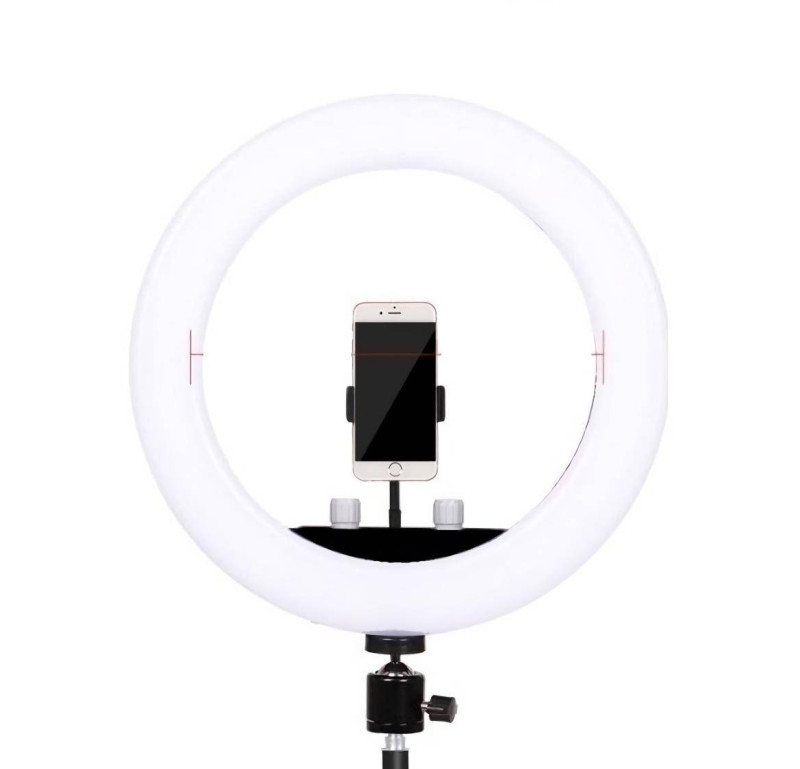 Модель классической круглой формы в фирменной сумке для хранения. Мощности светодиодов 28 Вт, а их 280 штук, хватит для студийных условий работы и помещения радиусом 5 м. Внешний диаметр кольца – 25.5 см, внутренний — 18.5 см. Производитель предлагает покупателю 4 цветовых решения – классический черный, стильный розовый, фиолетовый, красный. Сверху ламп располагается матовый рассеиватель для устранения теней, равномерного освещения с углом до 120 градусов.