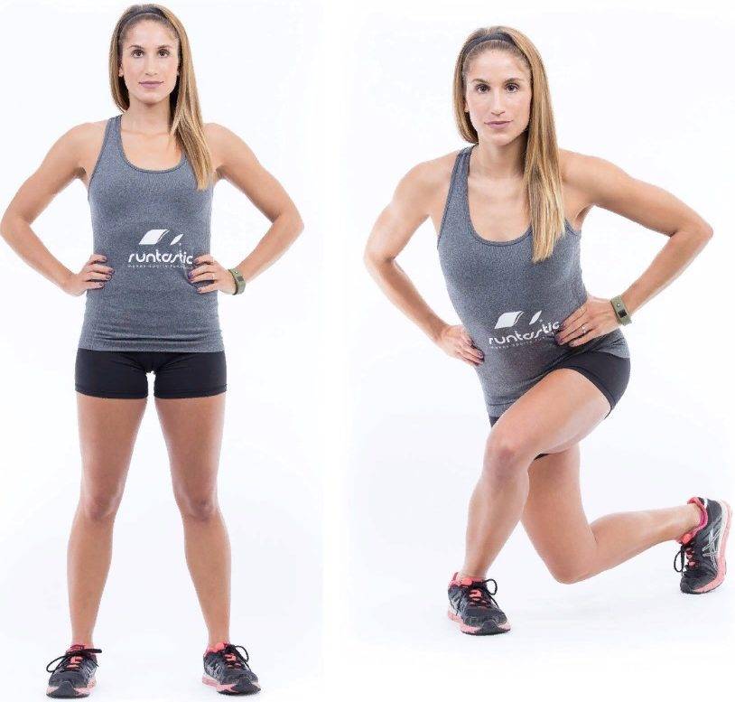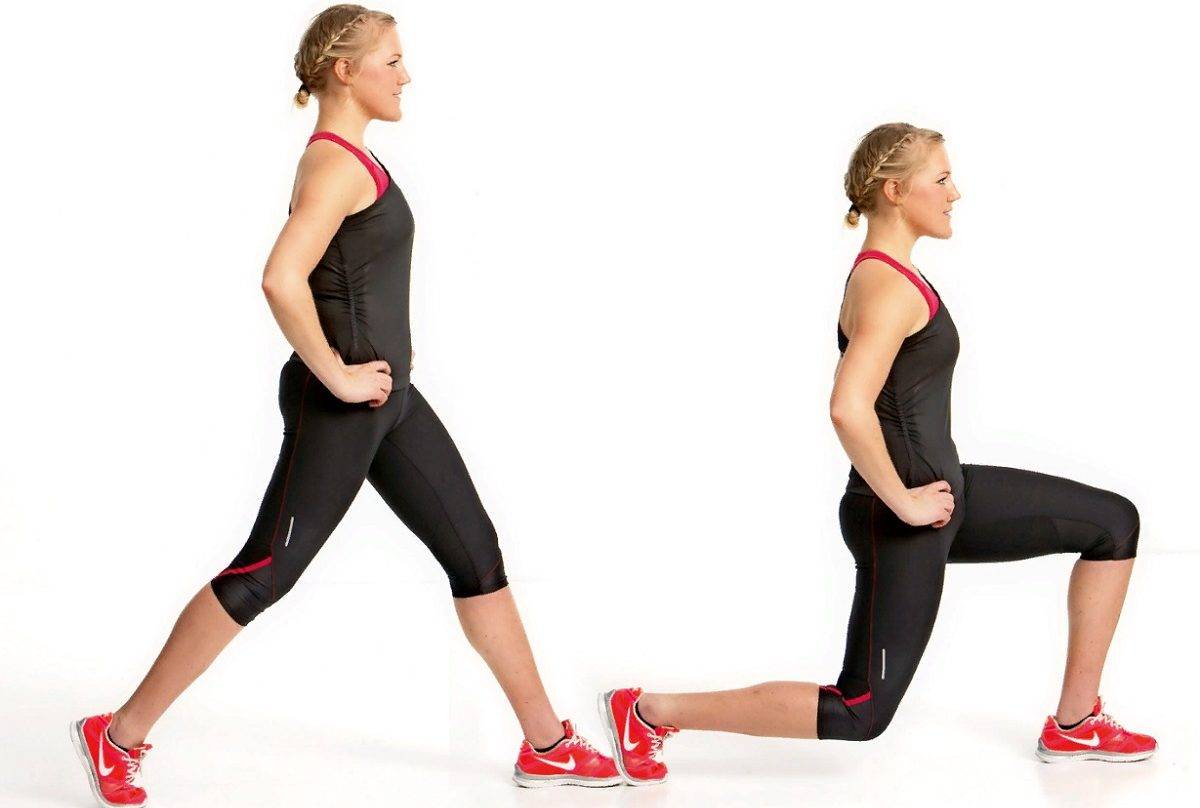 Хорошо помогают в тренировке ляшек. Сначала расставить ноги на ширину плеч. Носки чуть-чуть сдвинуты внутрь. Самое главное — равновесие сохранять полностью. В руки берутся гантели не очень тяжелого веса, спина полностью выпрямляется. Делают выпад первой стороной вперед, одновременно совершается выдох. Затем все повторяется, но уже для второй ноги. Потребуется повторить упражнение 20 раз на обе стороны. Отдохнув, совершается следующий подход, всего должно быть не меньше трех.