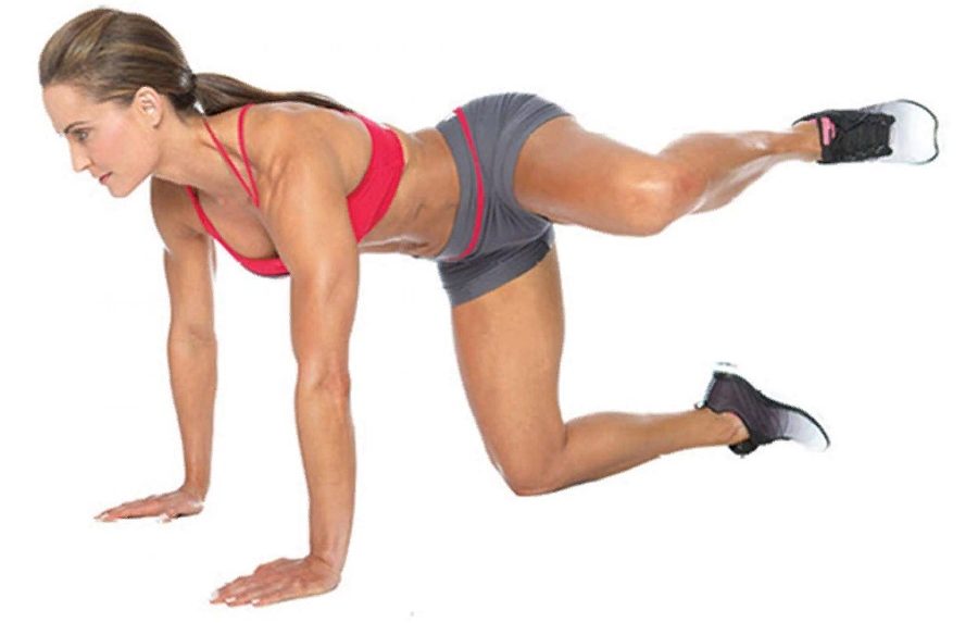 Сначала необходимо опуститься на колени и локти, обратив лицо вниз, а спину выпрямив. Нога, согнутая в колене под прямым углом, поднимается максимально вверх за счет выгибания в тазобедренном суставе. Действия приносят хороший эффект, если выполнять их не меньше, чем по 30 раз на каждую сторону. Достаточно пары подходов.