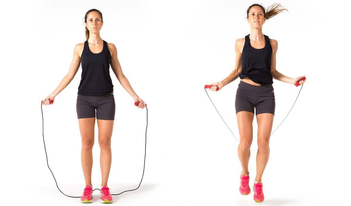 Больше всего со стороны движения напоминают медленный бег, поскольку быстрый темп развить нельзя. При каждом следующем шаге нужно переступать через скакалку. Основная нагрузка — на верхнюю часть бедер: