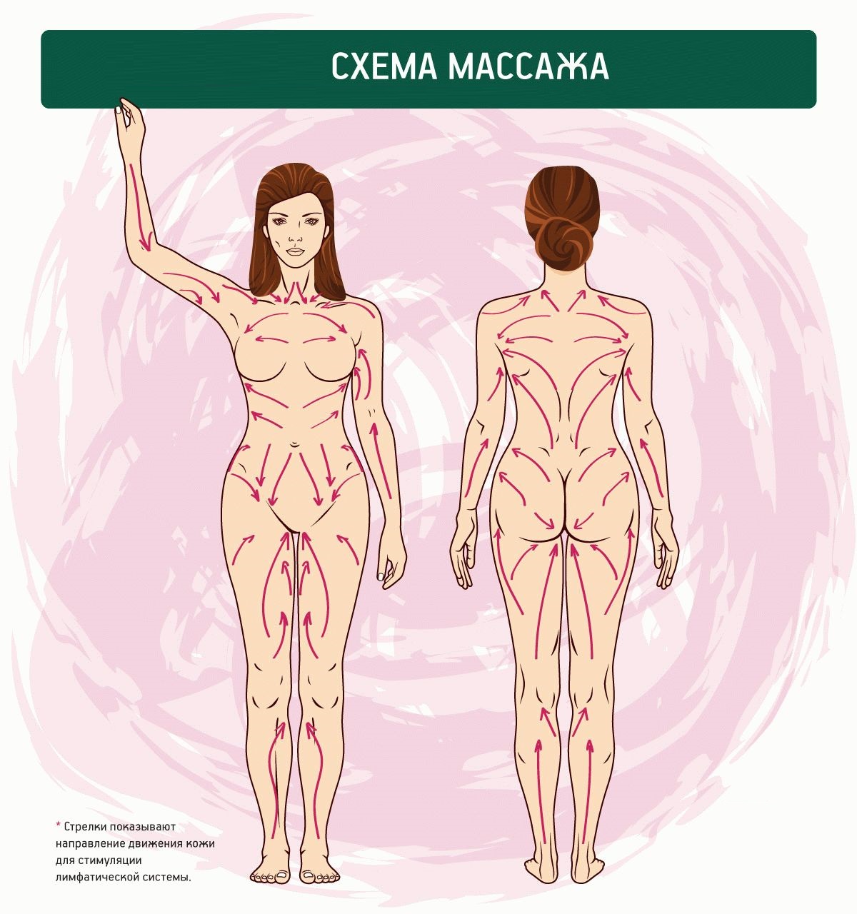 Простой массаж в душе – после непродолжительного нахождения под горячей водой кожа на проблемных местах должна быть красной. В этот момент требуется взять мочалку и аккуратно круговыми движениями растирать кожу. Подобный массаж рекомендуется проводить перед обертываниями.