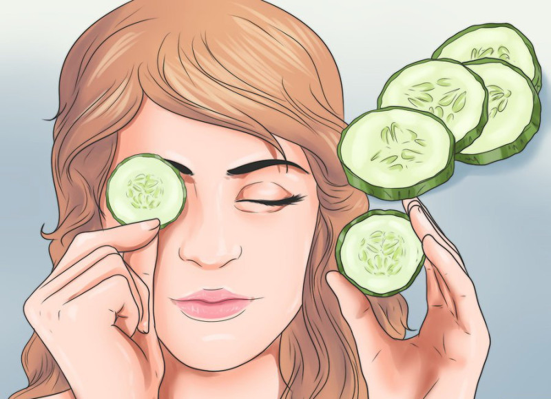 Шаг 2. Чтобы быстро убрать мешки под глазами, можно использовать какие-либо охлаждающие продукты. Например, приложить к глазам кусочки огурца. Главное, чтобы они были предварительно охлаждены.
