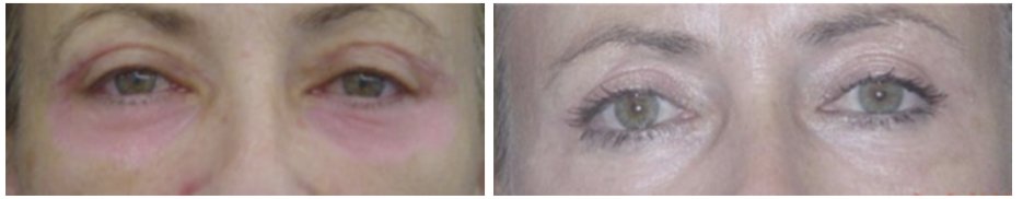 Результаты после псевдо-блефаропластики отмечаются спустя 7-10 дней. А период реабилитации составляет всего 3-4 дня. Отечность, которая наблюдается первое время, и покраснения глаз проходят быстро. В первый день после операции можно пить анальгетики, чтобы снять болевой синдром.